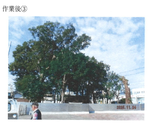 令和7年11月24日(月)、土佐市高岡町星神社で3名が参加し、神社の広葉樹剪定を行いました。
