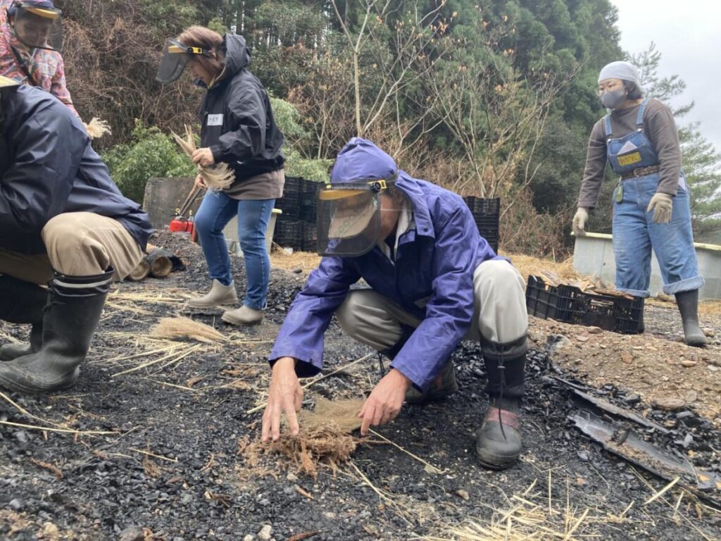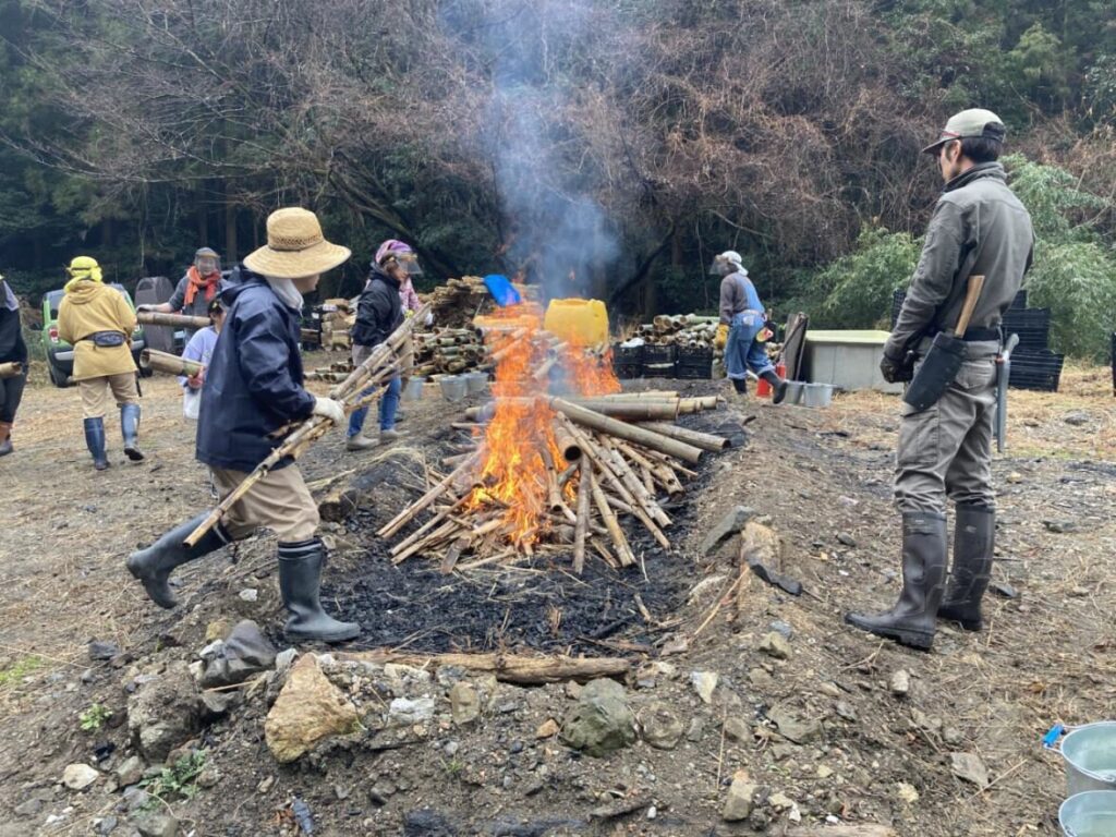 令和8年2月15日(日)に12名が参加し、高知市入定地域で竹林整備にて伐採した竹を原料に竹炭を作りました。